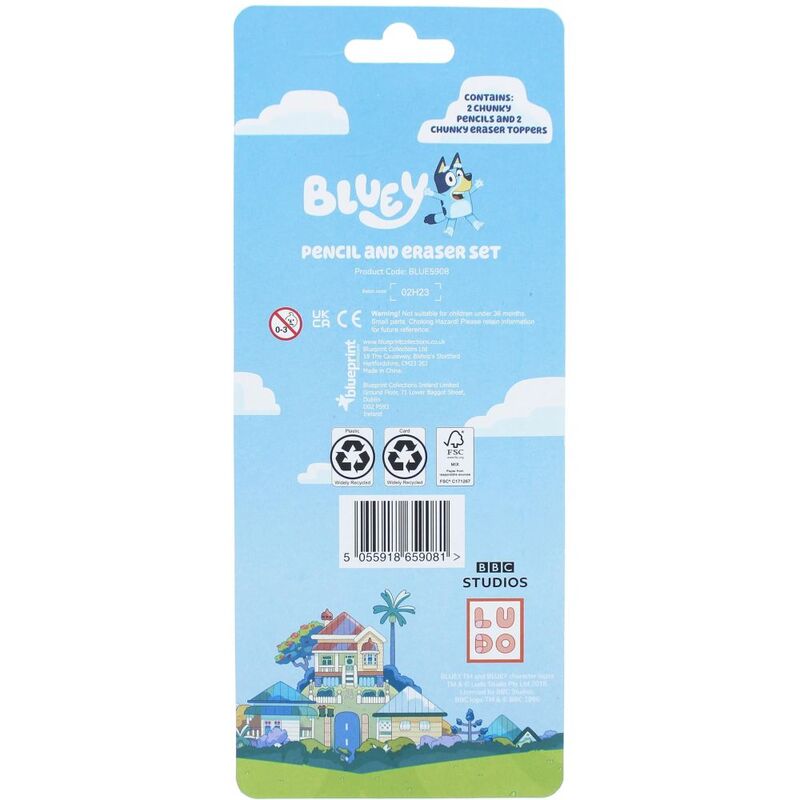Blueprint Bluey Pencil & Eraser Set