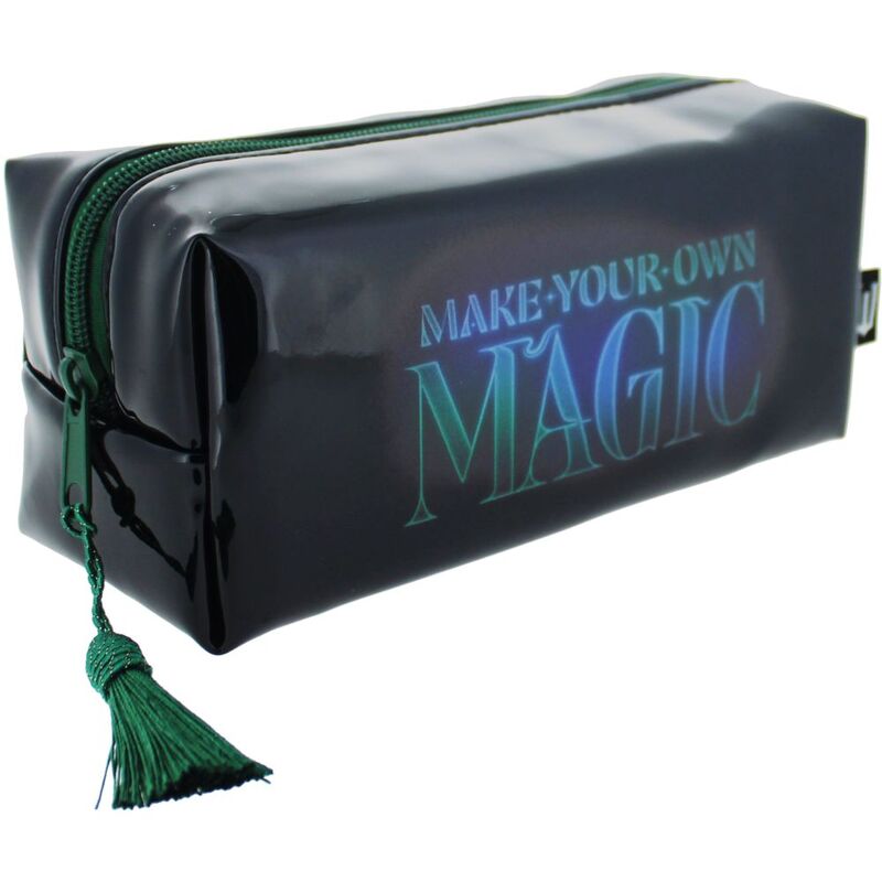 Keep your stationery neat, tidy, safe, and secure in this pencil case which features quotes from Wicked which Elphaba says. On one side it says Defy Gravity and the other says Make your own magic. It is made from durable black PVC and has a green zip and tassel. Having this pencil case means you can keep all your favourite stationery items safe whether you are at home or on the go.