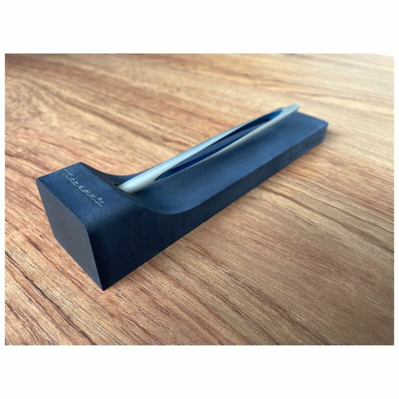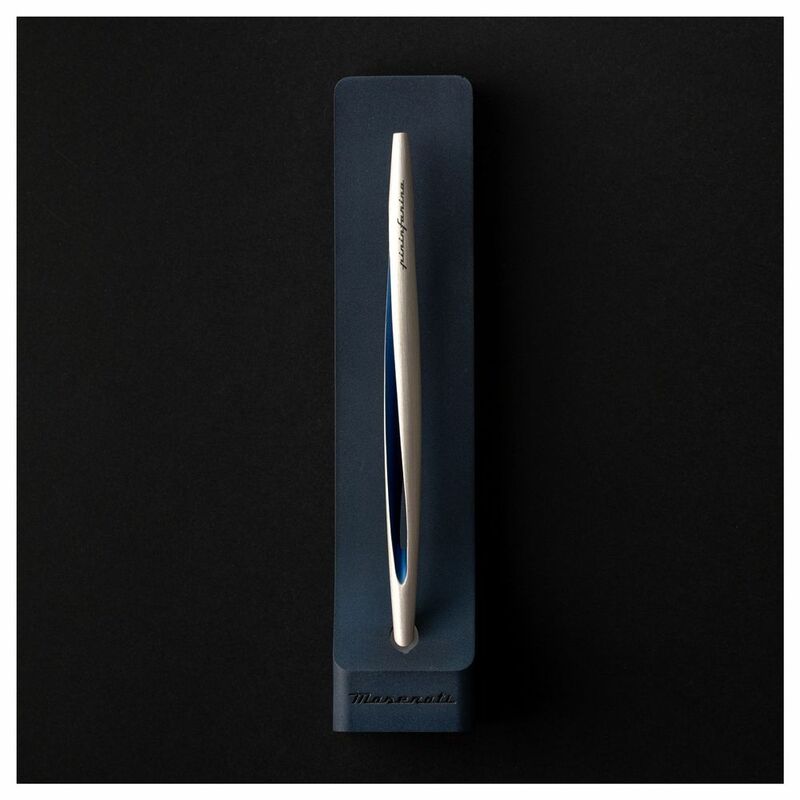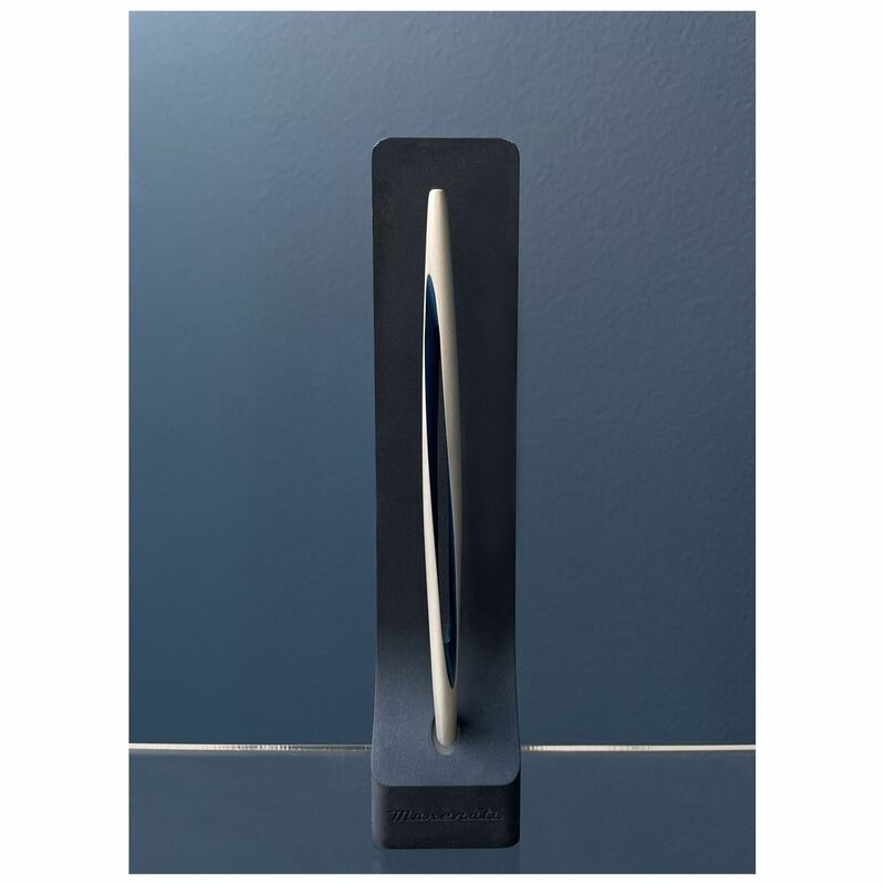 Aero: futuristic body is made of exclusive aerospace-materials according to the principles of torque, which shapes the material and evokes the symbol of infinity. In contrast with it, the light stone base in the iconic Maserati blue. Opposite materials that complement and attract one another: a tool that s urpasses the barrier of time to explore new galaxies of expression.
