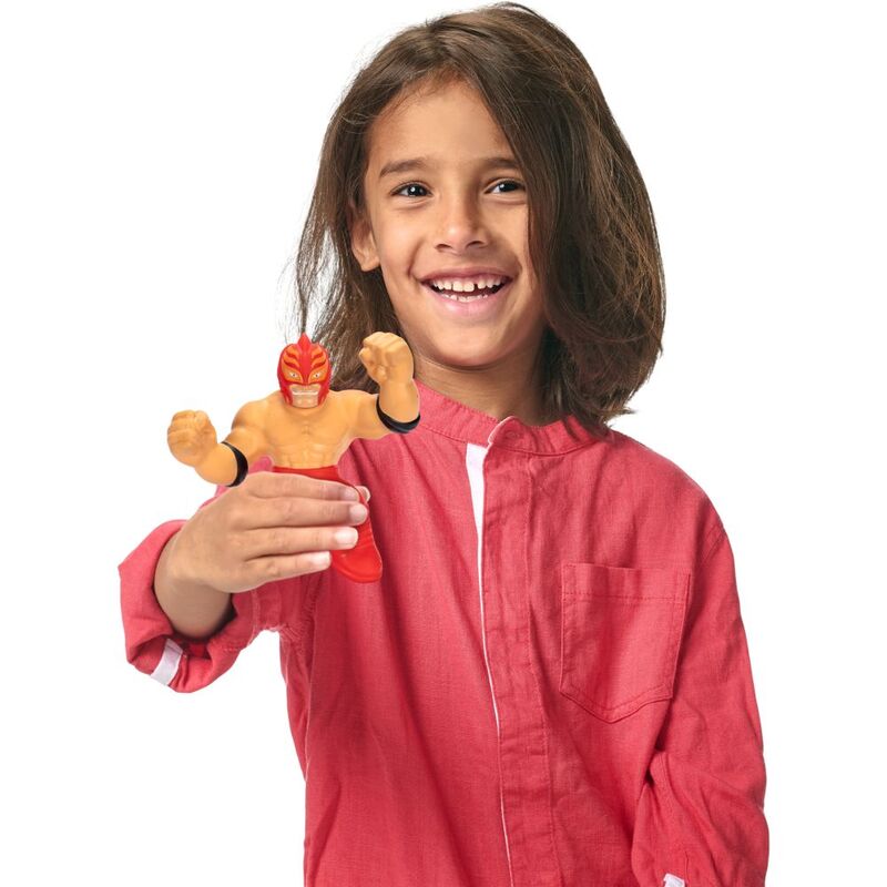 This Heroes of Goo Jit Zu Rey Mysterio figure is the ultimate stretchiest, gooiest, squishiest WWE figure ever! With unique "Superstar Metallic Gel" filling! Stretch him up to 3 times his size! Discover Rey Mysterio with a special metallic gel inside his body that makes him Super Stretchy! There are other WWE figures with a variety of colored Superstar Gel fillings that swirl around inside. It allows kids to play with each figure in a different way!