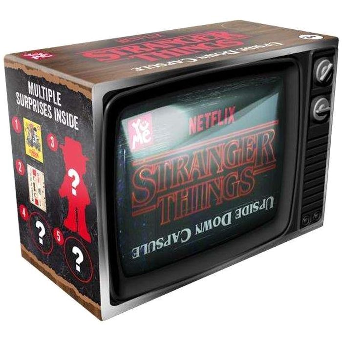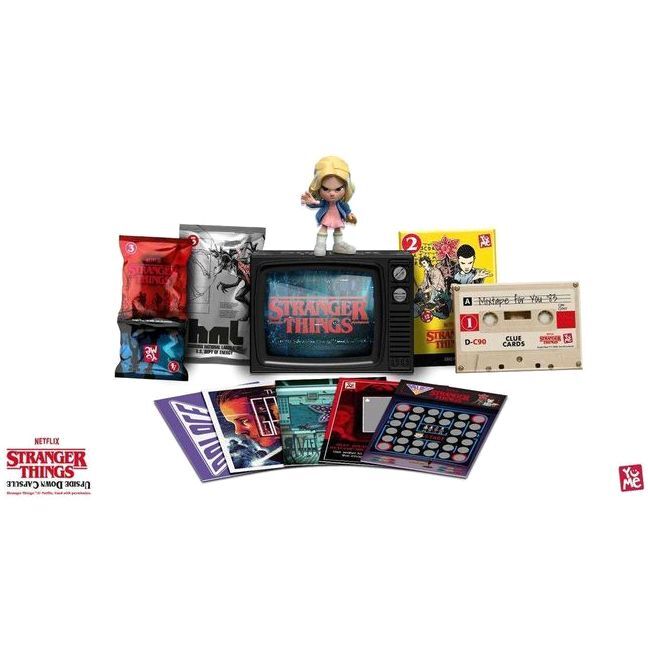 The YUME STRANGER THINGS: UPSIDE DOWN CAPSULE BLIND BOX box is a great way to reveal the secrets behind the series. Transport yourself back to the 1980s, unpack your retro TV and start uncovering the secrets of the capsule. Help Jonathan develop his water-assisted photography, play an 80s-style arcade game and discover a wealth of 80s trading cards with collectible artwork, Hawkins Universe icon stickers, fan favourites and character cards. Finally, unwrap your character figurine and its unique accessories. It's the ultimate Stranger Things experience.