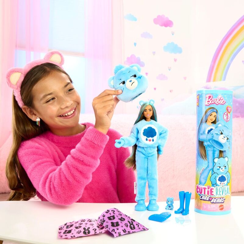 • With 10 surprises in 1 package, Barbie Cutie Reveal Care Bears dolls deliver the cutest unboxing experience with plush friends, fashions and transforming fun!