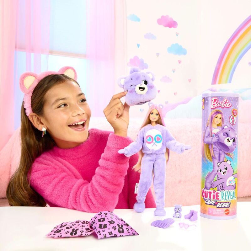 - With 10 surprises in 1 package, Barbie Cutie Reveal Care Bears dolls deliver the cutest unboxing experience with plush friends, fashions and transforming fun!