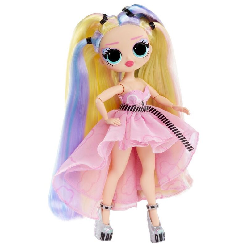 Introducing LOL Surprise OMG Sunshine Makeover fashion doll Stellar Gurl! A total chameleon, it's always a surprise what her look will be but whatever it is, it's going to be a Moment. Unbox multiple surprises with Stellar Gurl including colour changing fashions and stylish accessories. Bring Stellar Gurl outside during any time of day whether it's sunny or cloudy, or even indoors next to a window, for a glamorous makeover. Watch the magic happen before your eyes and see her hair colour change from blue to purple.