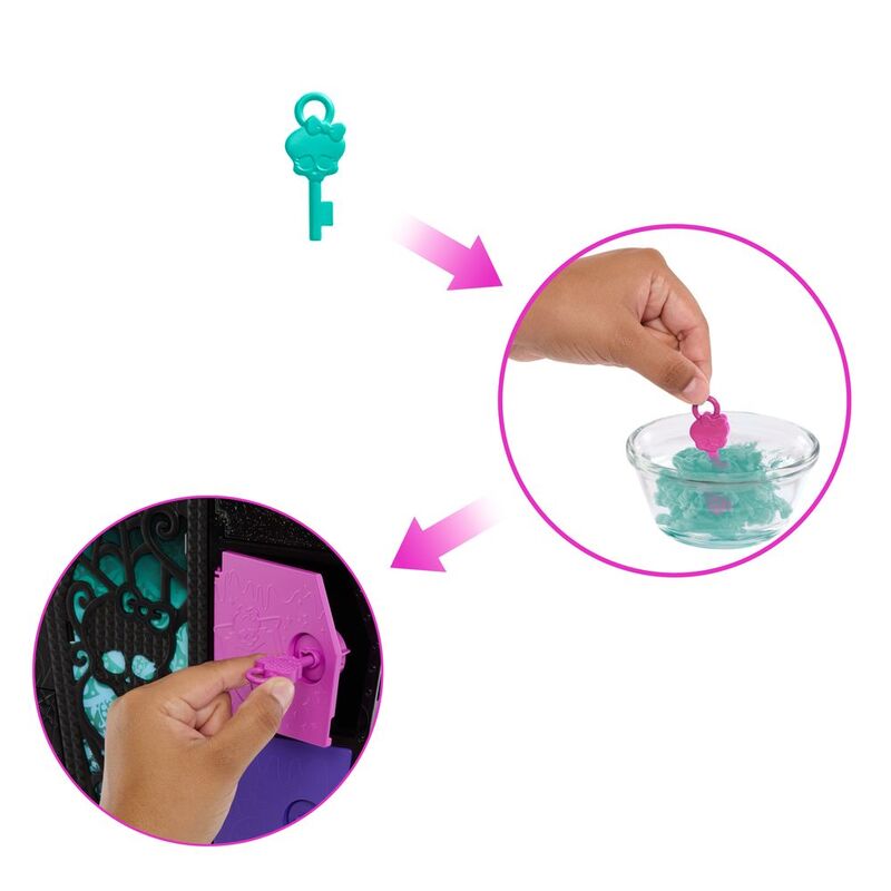 ​Can you creep a secret? Take the four Color Reveal™ keys and wash off their mysterious coating, then unlock their four matching compartments to find hidden items stashed inside.​