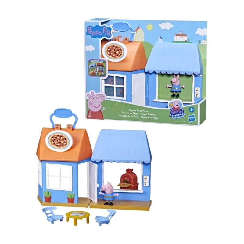 - PEPPA PIG PEPPA’S PIZZA PLACE PLAYSET TOY lets preschoolers, Peppa fans, and pizza lovers ages 3 and up pretend that they’re enjoying a pizza dinner with everyone’s favorite 4-year-old pig