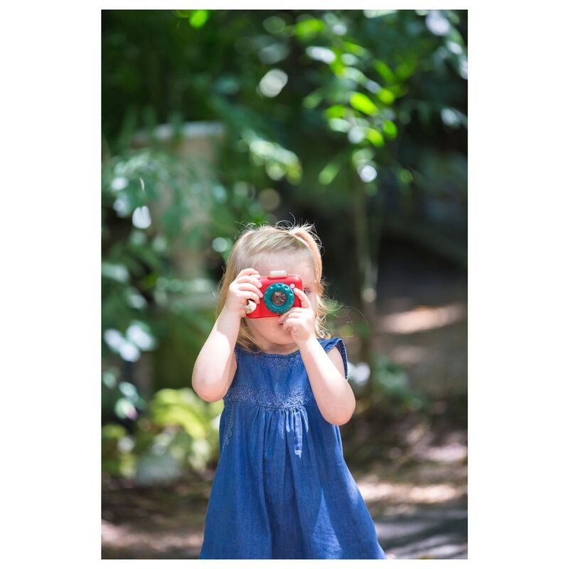 Get picture perfect views of your surroundings with this PlanToys camera. Point, focus, and click the camera and see the different images through the kaleidoscope lens!