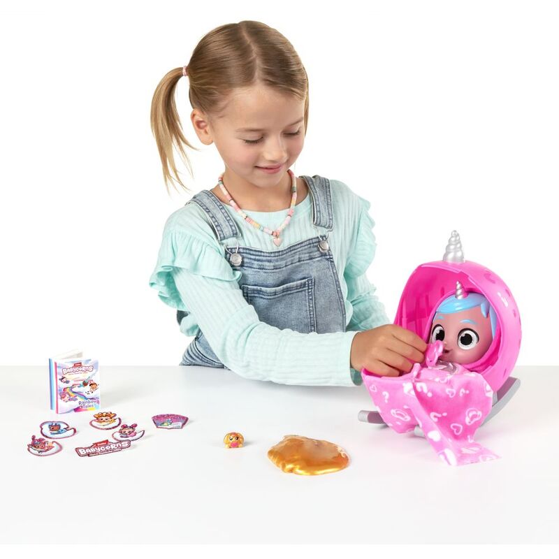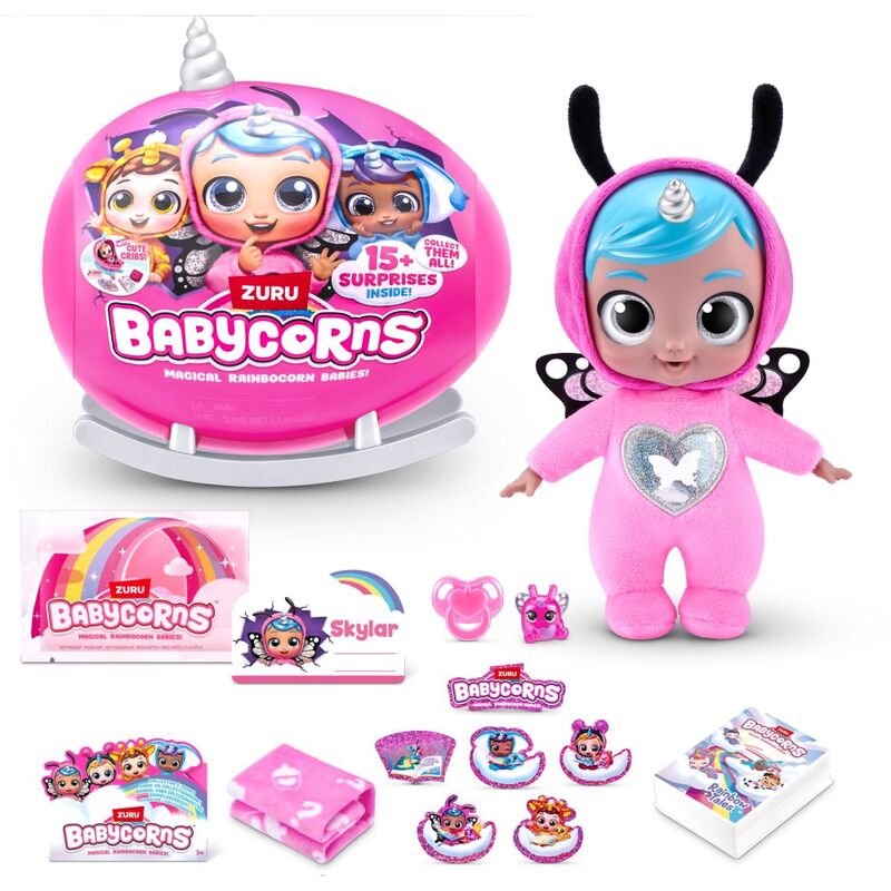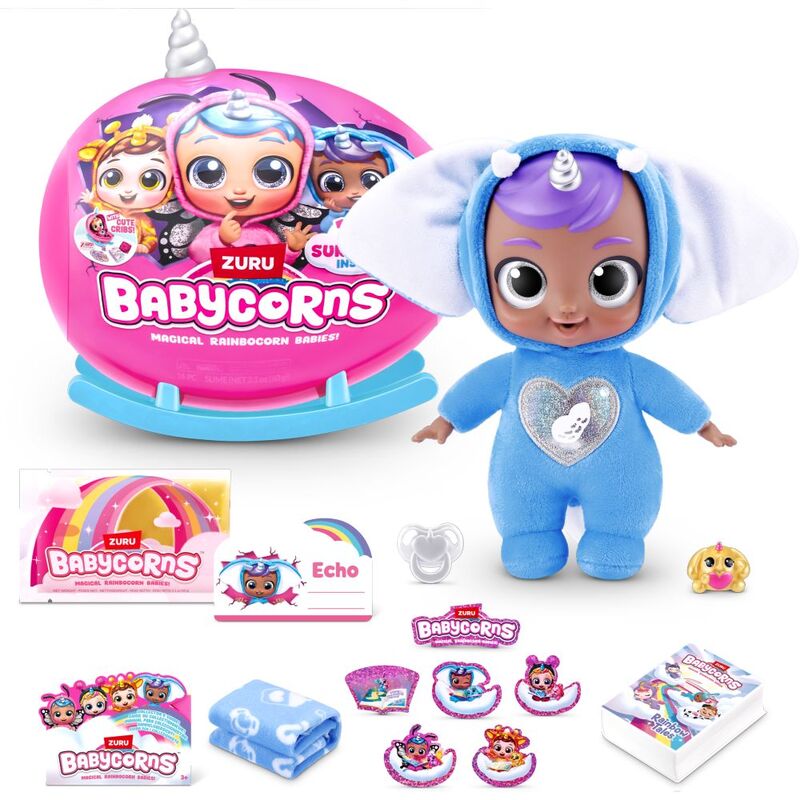 The Babycorns have arrived and can't wait to play! Unbox the sweetest magical Rainbocorn babies, nestled inside their magical cribs. You'll find over 15 surprises, including a pacifer and a heartwarming storybook. Bundle them up in their very own baby blanket. These lovable little ones can't wait to be cared for! Which Babycorn will you bring along on your next magical adventure?