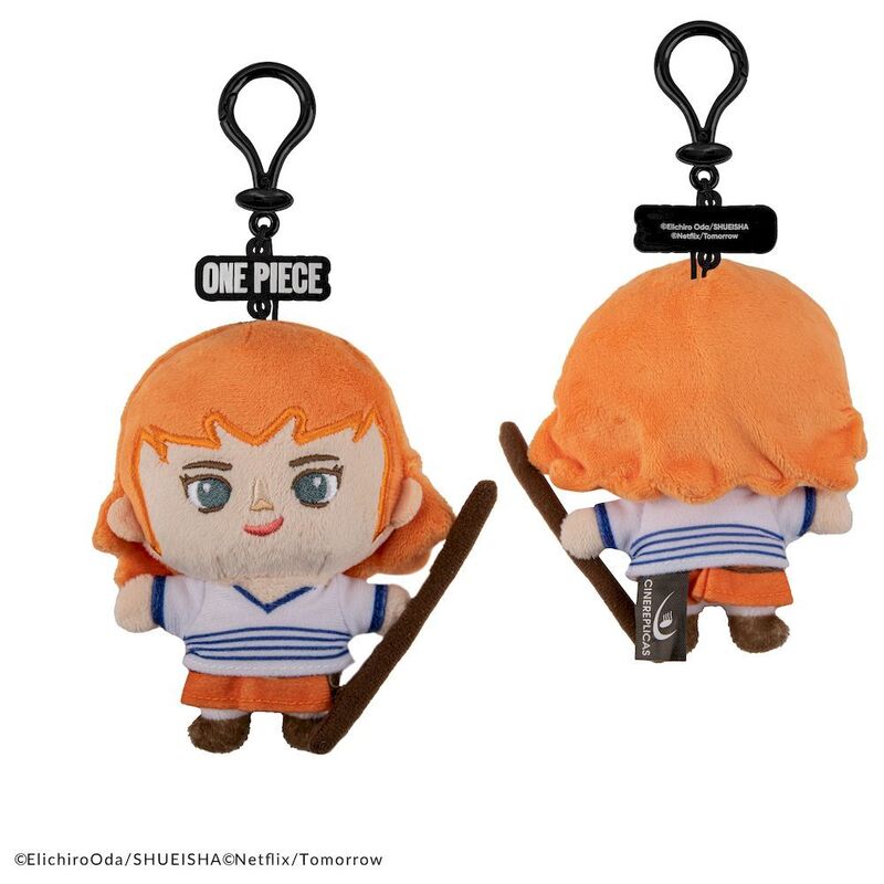 Embark on your daily adventures with the skilled navigator of the Straw Hat crew, Nami, embodied in this delightful keyring plush.