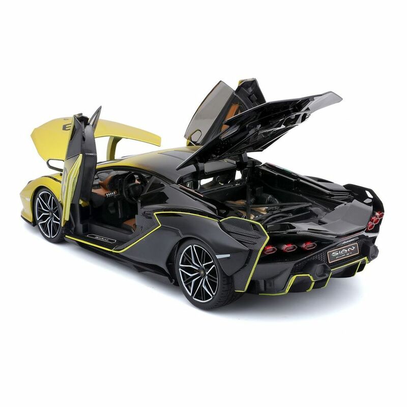 Bburago Lamborghini Sian FKP 37 - A first-class super sports car Perfect driving fun and fantastic handling are at the top of the list at Lamborghini. The Lamborghini Sian FKP 37 is in no way inferior. True to the original and with a love of detail! The collector's car is manufactured using a metal injection moulding process and refined with plastic parts. Its yellow and black unmistakable silhouette and movable bonnet, trunk and doors all look like the original on this model. A must for every collector and an eye-catcher for the showcase!