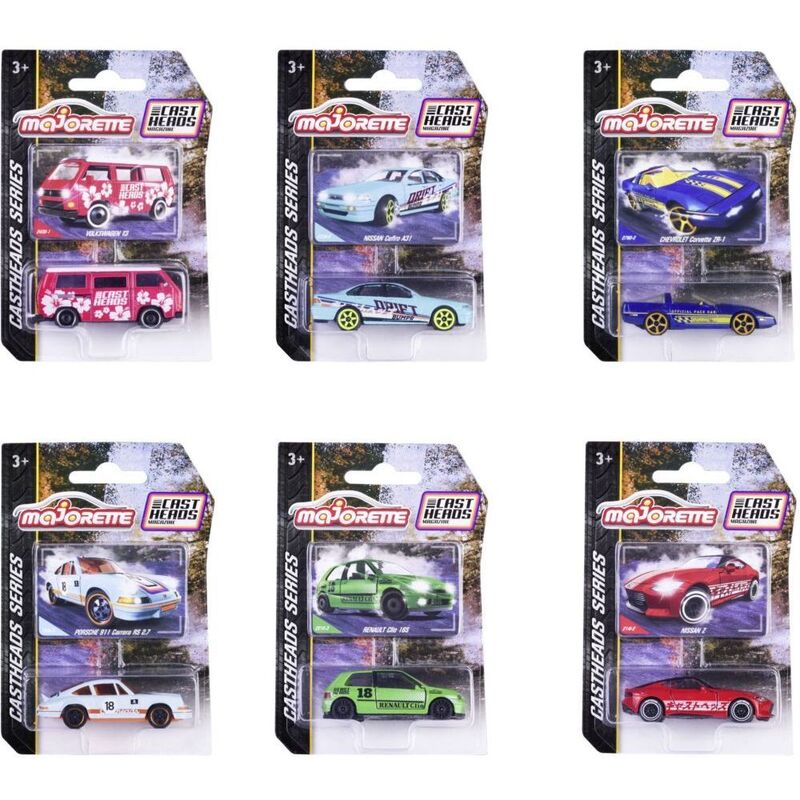 Get ready to rev up your collection with Majorette's Castheads Series Premium Cars! Featuring six vibrant castings, each with opening parts and suspension, this collaboration with online diecast magazine Castheads is a must-have for any car enthusiast. Let these cool and colorful cars take you on a wild ride!