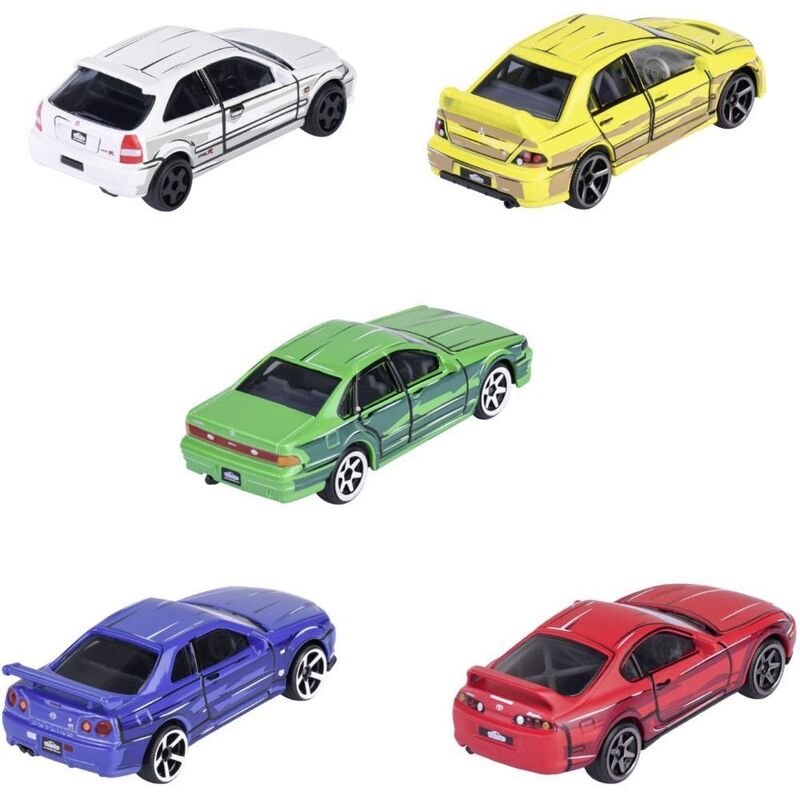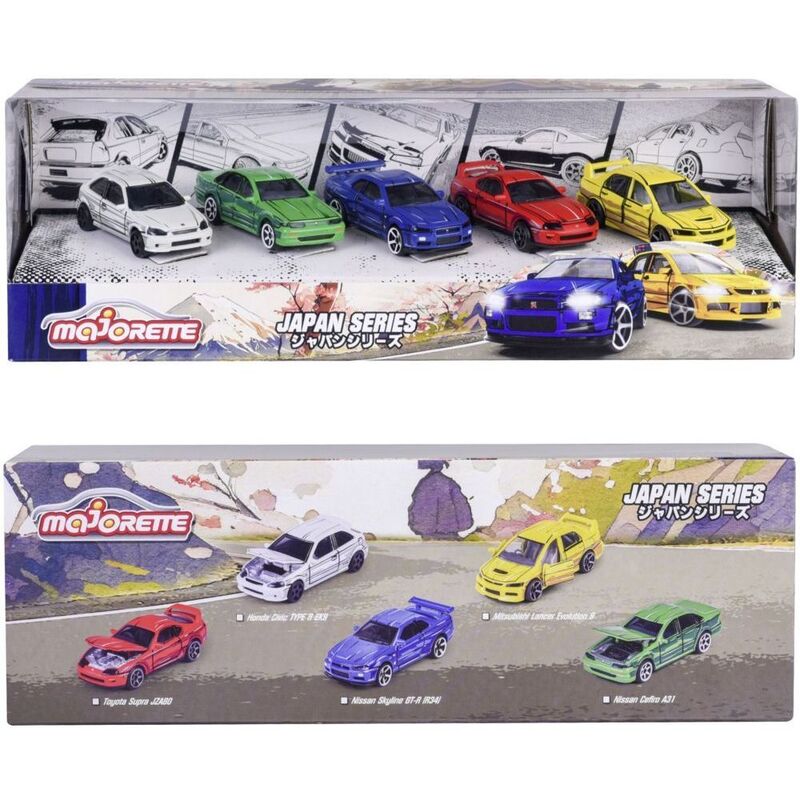Experience the power and elegance of Japanese automotive design with the Majorette Japan Series gift pack. This set features five realistic and high-quality Japanese dream cars: Nissan Cefiro 31, Nissan Skyline GT-R (R34), Toyota Supra JZA80, Mitsubishi Lancer Evolution 9, and Honda Civic Type R EK9.