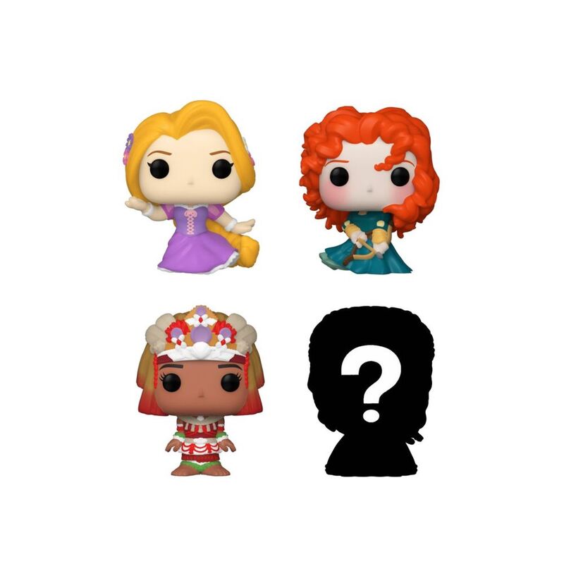 Assortment: The 4-pack offers a diverse set of Disney Princesses, including Rapunzel, Merida, Moana, and a mystery character. This variety allows fans to expand their collection with different princesses in a single purchase.