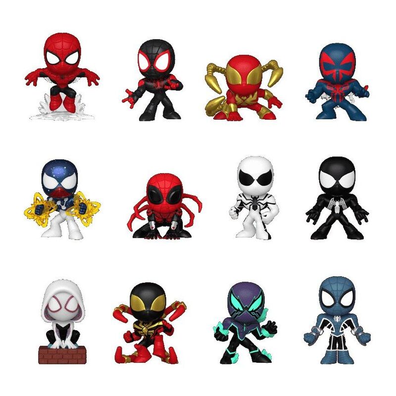 Make room in your Marvel collection for your favorite web-slinging hero with the Spider-Man Mystery Minis! Collect the many looks of this wall-crawler as this assortment of collectibles! There’s Spider-Man (1/6), Miles Morales (1/6), Iron Spider (1/6), Spider-Man 2099 (1/6), Captain Universe (1/12), Superior Spider-Man (1/12), Anti-Venom Suit Peter Parker (1/24), Symbiote Suit Peter Parker (1/24), Spider-Gwen (1/36), Miles Morales Iron Spider (1/36), glow-in-the-dark Chasm (1/72), and glow-in-the-dark Fear Itself Suit Spider-Man (1/72). Vinyl collectible is maximum 3-inches tall, varies depending on character. One collectible per single package purchase. Item selection is random, as each piece is in blind packaging. We cannot accept requests for specific items. You may receive duplicate figures.