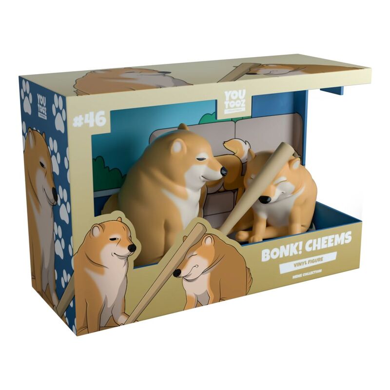 BONK! Go to jail! A new addition for your Youtooz Cheems Collection, we bring you Bonk! Cheems. Depicted is Cheems, sitting in his glorious form, smirking with a knowing sly smile, holding a bat which he uses to bonk a second Cheems on the head. Be careful what you say, you might be next! The interior of his box is designed to show Cheems in his natural habitat, cozy in his living room. The exterior illustrates Shiba Inus happily playing, Bonk!, and Cheems’ smirking against a pattern of white doge paws. This collectible ships in a matte, embossed, protective outer sleeve inside a shipping carton sealed with Youtooz tape. *Bonk* *Bonk* *Bonk* *Bonk* *Bonk* *Bonk*