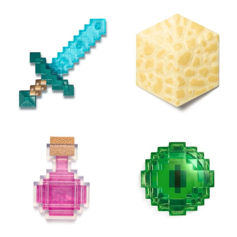 This Minecraft Inventory Chest from Series One: Biome Discoveries explores The End biome and features Diamond Sword, End Stone, Bottle of Dragon’s Breath & Eye of Ender.