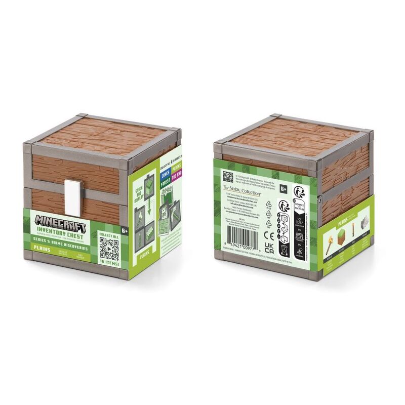 Minecraft Inventory Chest – PlainsThis Minecraft Inventory Chest from Series One: Biome Discoveries explores the Plains biome and features Wooden Axe, Grass Block, Torch & Iron Ingot.