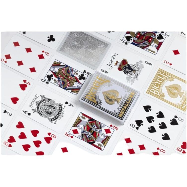 Enhance your card games with Bicycle Metalluxe Playing Cards. These premium cards feature a stunning silver metal foil finish, adding a touch of luxury to your gaming experience. Crafted with premium quality cardstock, they feature an Air Cushion Finish for effortless shuffling and seamless handling, enhancing your overall gameplay and providing a professional playing experience. These cards are not only perfect for various card games, such as poker, bridge, and blackjack, but also for performing captivating magic tricks. Perfect for collectors, the eye-catching metal foil design makes them a standout addition to any playing card collection. Upgrade your game night and enjoy endless hours of entertainment.