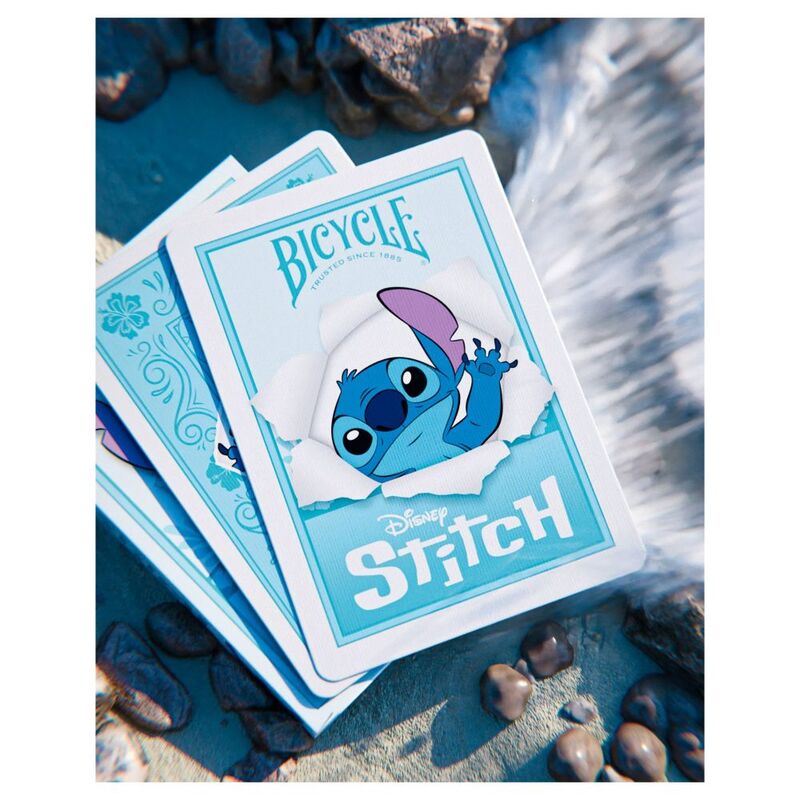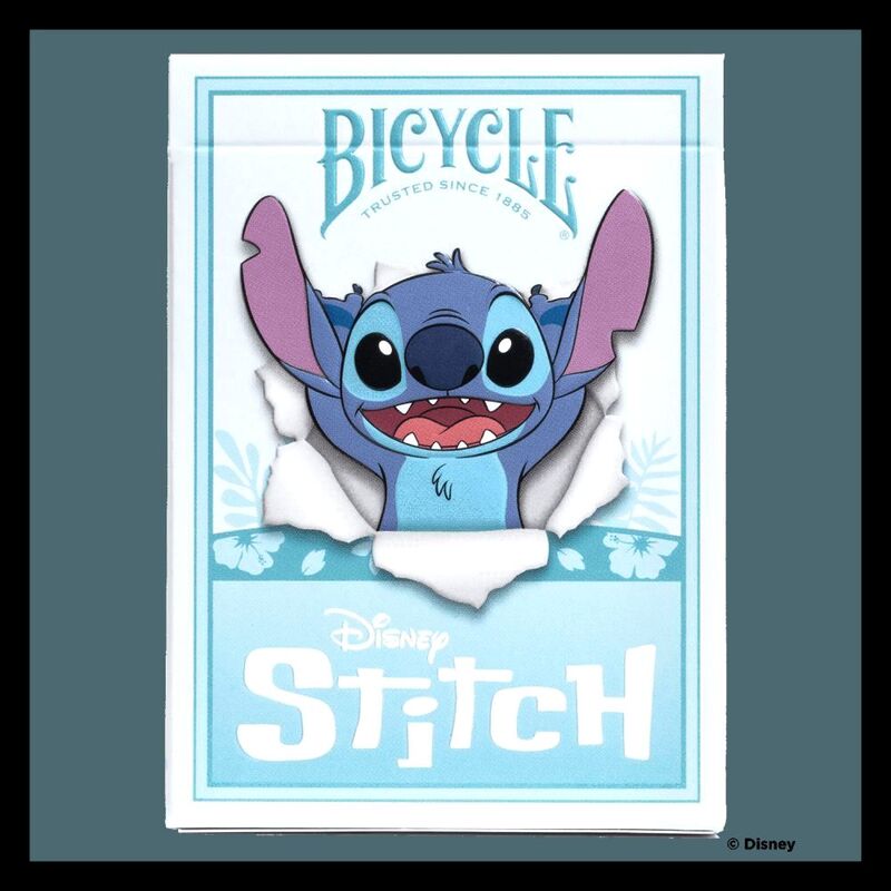 Artwork of Stitch tears through the tuckbox and into our hearts with Disney Stitch Inspired Playing Cards by Bicycle. Bring the Hawaiian magic of Ohana home to your family! Experiment 626 is causing mischief throughout the 54 cards, along with his "boojiboo" Angel on the court cards!