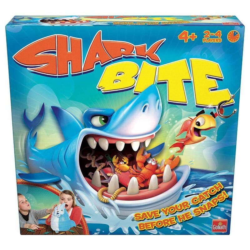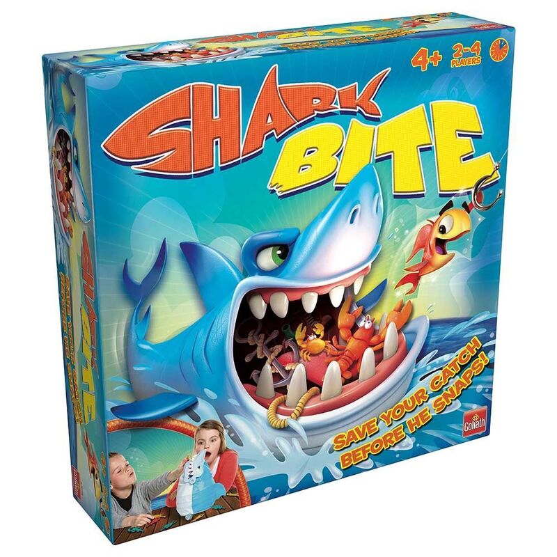Save your catch before he snaps. Rescue the fish from the shark's mouth using the fishing rod, but be careful he might bite. Roll the dice to see how many fish you need to rescue from the shark's jaws. The player with the most fish at the end of the game is the winner. For 2-4 players, for age 4+ years. No batteries required.