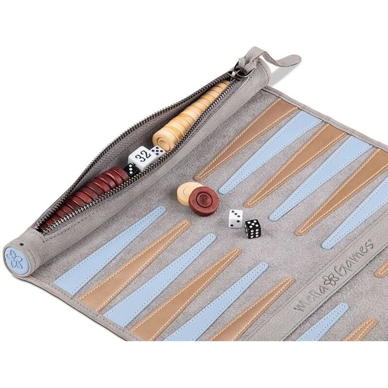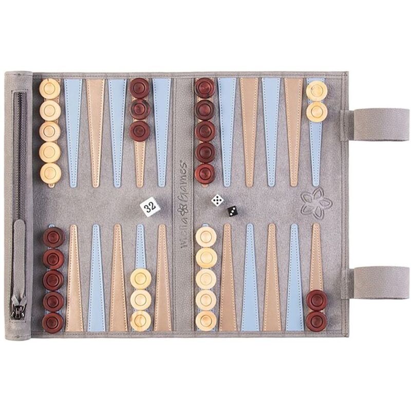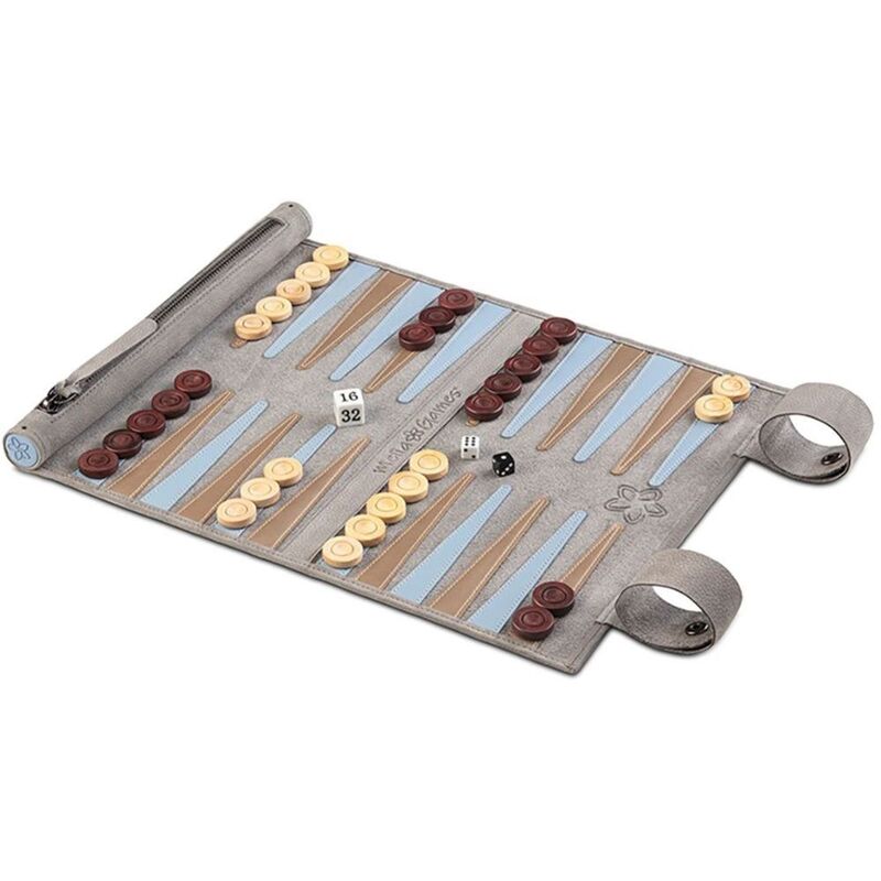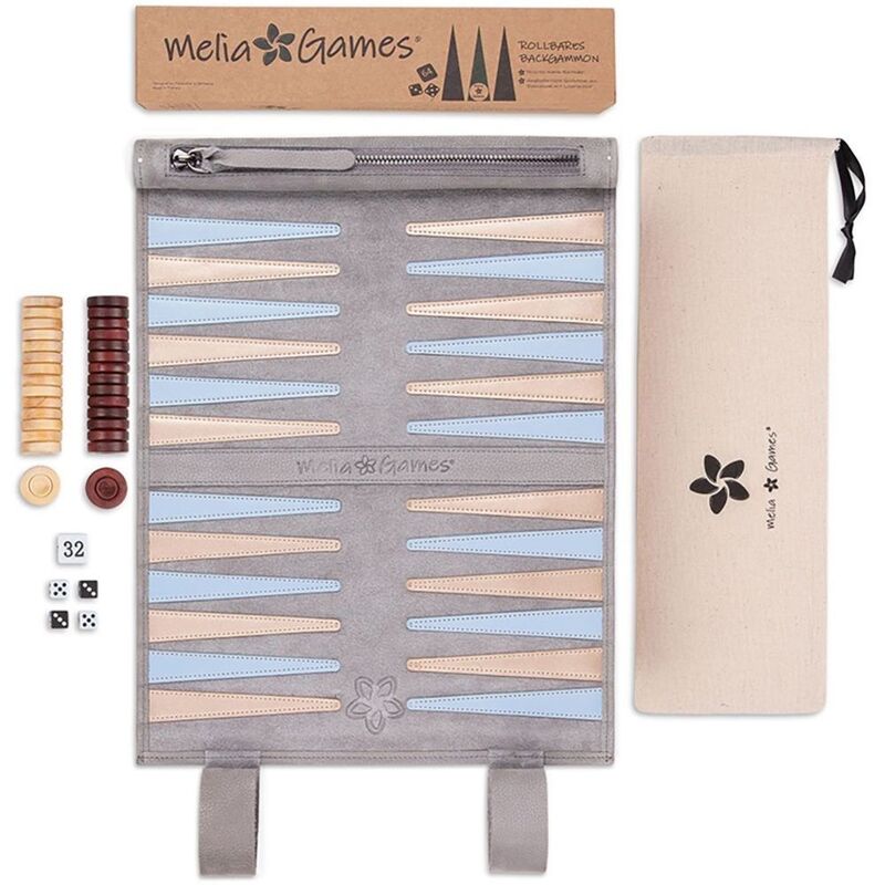 Melia Games Backgammon Travel Roll Up Leather Set Light - Gray
