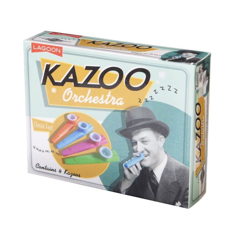Lagoon's Kazoo Orchestra contains 4 brightly colored Kazoos and instructions to learn 2 songs.