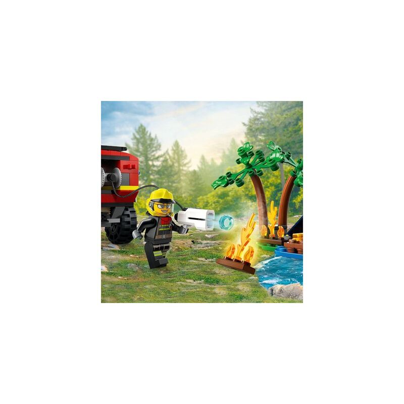 - What’s in this LEGO® building set? – Everything kids need to build a toy 4x4 fire engine, trailer, rescue boat, tent and a camping scene with a campfire, plus a camper and 2 firefighter minifigures