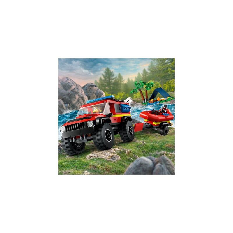 - Toy rescue vehicles playset – Double the excitement with a fun combo of toy off-road fire rescue vehicles with this LEGO® City 4x4 Fire Engine with Rescue Boat for ages 5 plus