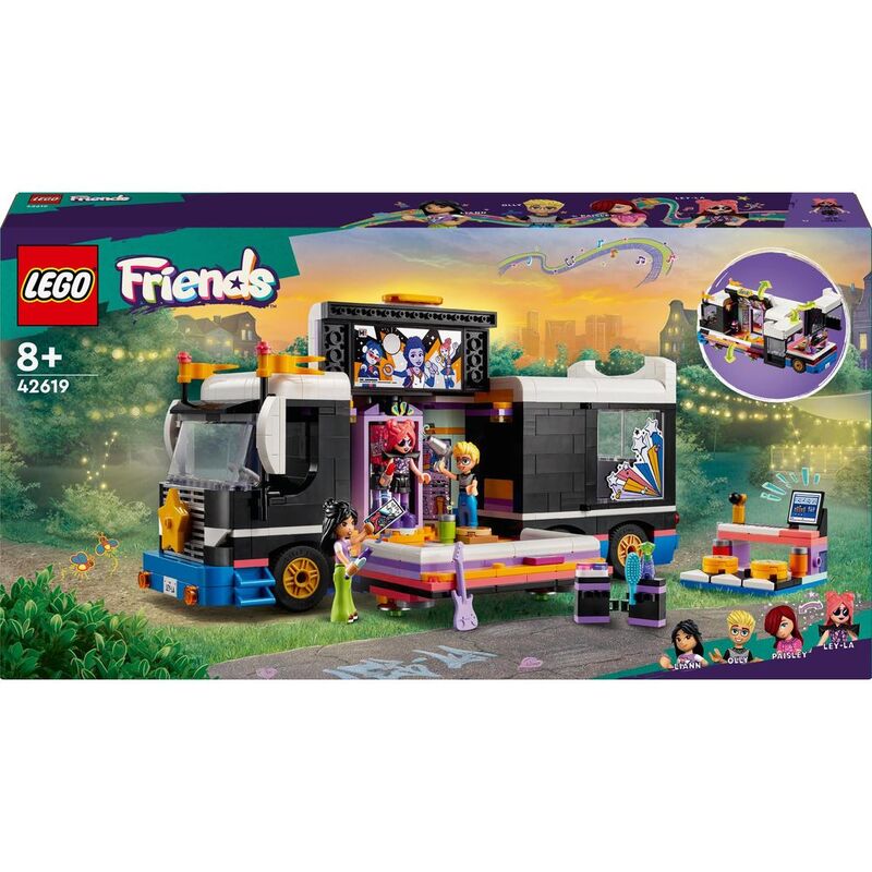 Bring role play to life with this LEGO® Friends Pop Star Music Tour Bus toy playset (42619) for girls, boys and kids aged 8+. The set includes a buildable bus and backstage area with accessories and 4 LEGO Friends characters.