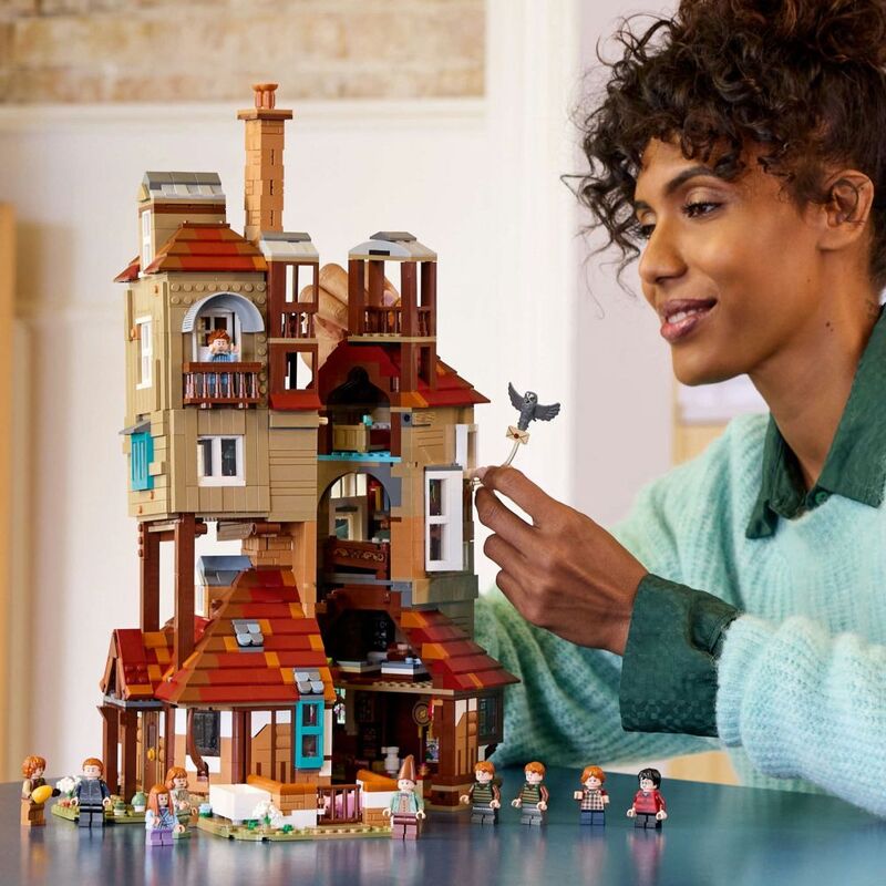 This collectible building set features 10 LEGO Harry Potter minifigures, including the entire Weasley family and Harry Potter himself, plus Errol the owl and 2 pig figures to place in the pigsty outside the house.
