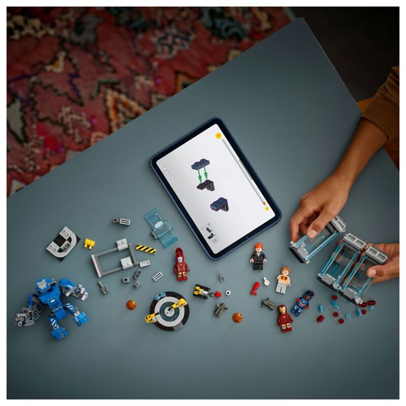 - • Iron Man’s lab with LEGO® ǀ Marvel figures – Iron Man’s Laboratory: Hall of Armour is a kids’ build-play-and-display Avengers set for boys and girls aged 8 and over
