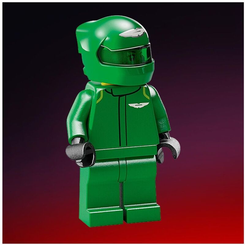 The Aston Martin Aramco F1 race car features a cockpit that opens by lifting the halo bar, a rear wing, wishbone suspension, sponsor stickers and wider rear tyres imprinted with “Pirelli”. The vehicle kit comes with a driver minifigure in an Aston Martin Aramco F1 outfit and a winged helmet to place inside the cockpit and stage races.