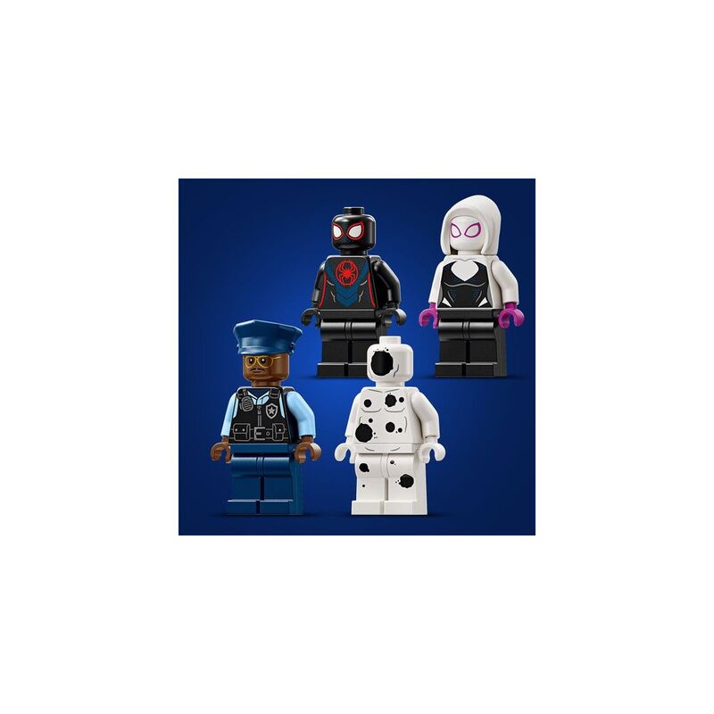 - LEGO® Spider-Man minifigures – The buildable Spider-Man playset comes with Miles Morales, The Spot, Gwen Stacy and Officer Jefferson minifigures, plus web-slinging accessories