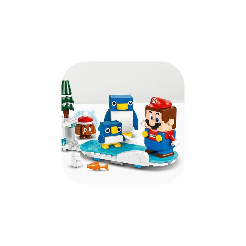 • LEGO® Super Mario™ building toy for kids featuring a Goomba figure – Play in an ice cave, go sledging and skate with the Penguin Family Snow Adventure Expansion Set