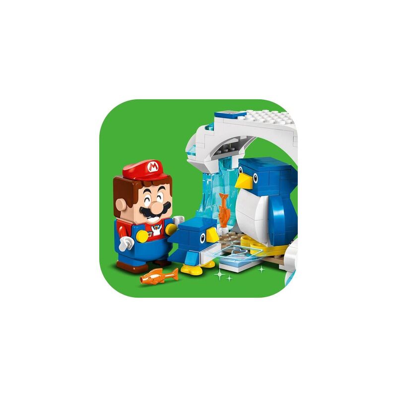 For interactive play, add a LEGO® Mario™, LEGO® Luigi™ or LEGO® Peach™ figure from a LEGO Super Mario Starter Course (71360, 71387 or 71403 – each sold separately) and earn digital coins for reuniting the baby penguin with its parent, defeating the Goomba, and more.