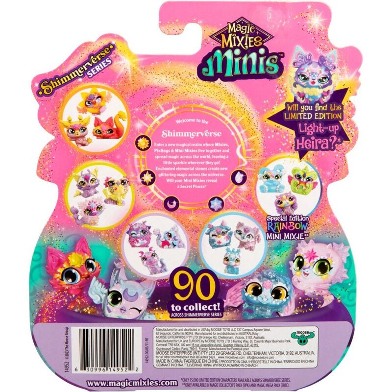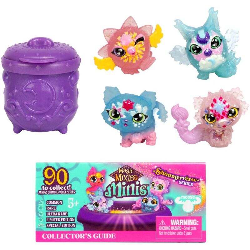 New Magic Mixies Minis 4 Pack contains 4 Mixies Minis toy figures including 1 Hidden Mixies inside a Cauldron. Magic Mixies Minis have 5 new magic powers - Starlight, Ice, Sun, Rainbow and Moonstone. Each power has a different magical reveal such as glowing, sparkle reveal and colour change! Maybe your child will find a Limited Edition Light-up Heira! She really lights up! The new Shimmerverse Series is a magical realm where Magic Mixies Minis spread their magic across the world leaving a little sparkle wherever they go!