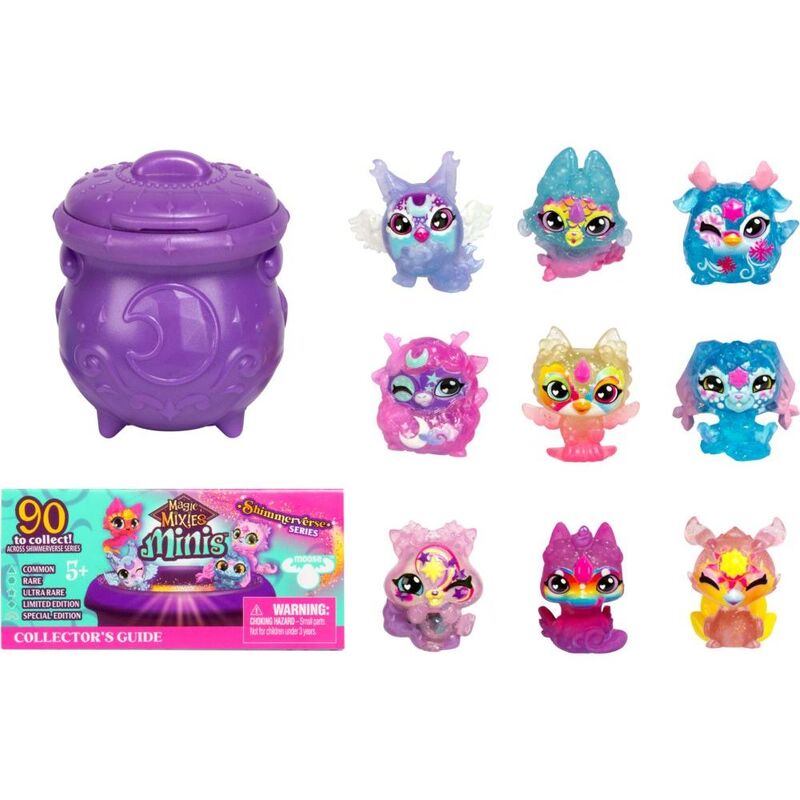 Welcome to the Shimmerverse! Now your child can enter a new magical realm where Mixies spread their magic across the world leaving a little sparkle wherever they go! Magic Mixies Minis are small in size but big on surprise! Mischievous and magical, Minis are so much fun with all their different ways to play! There are 90 Magic Mixies Minis for kids to collect across five new magic powers - Starlight, Ice, Sun, Rainbow and Moonstone. Each power has a different magical reveal such as glowing, sparkle reveal and colour change! Maybe you will find the Limited Edition Light-up Mini, Heira! The Magic Mixies Minis Nine Pack contains nine Minis toy figures including one Special Edition Rainbow Mini Mixie. Girls and boys will love to mix their magic potion and watch it fizz and bubble to reveal two Magic Mixie Minis inside the cauldron! Collect all 90 Magic Mixies Minis and join them as they travel across the Shimmerverse and adventure into a new world of real magic!