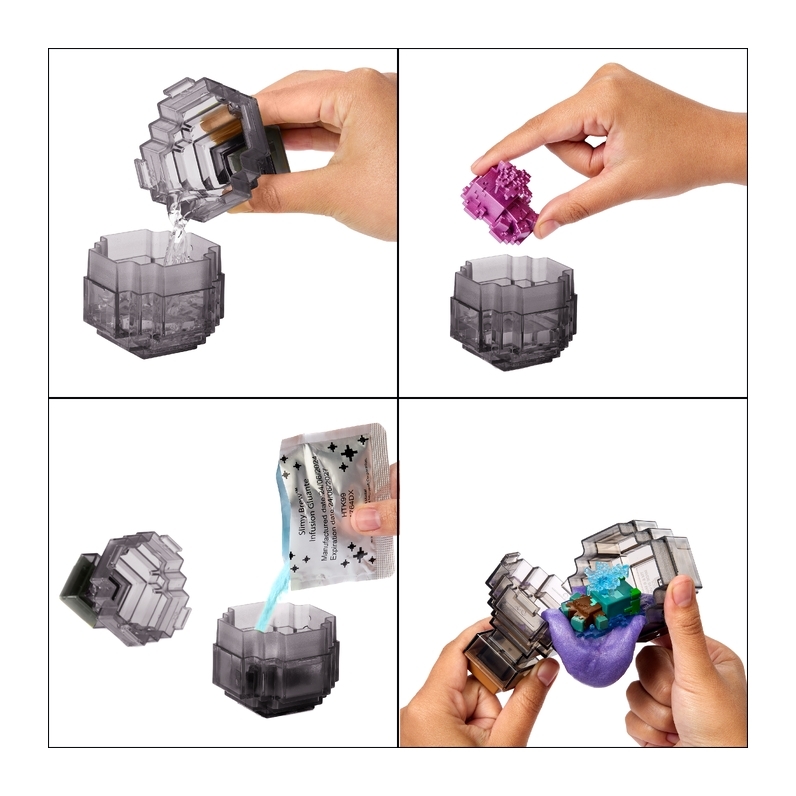 The Minecraft Mini Mode Mining collection includes a container, figure, accessory, and moldable sand!