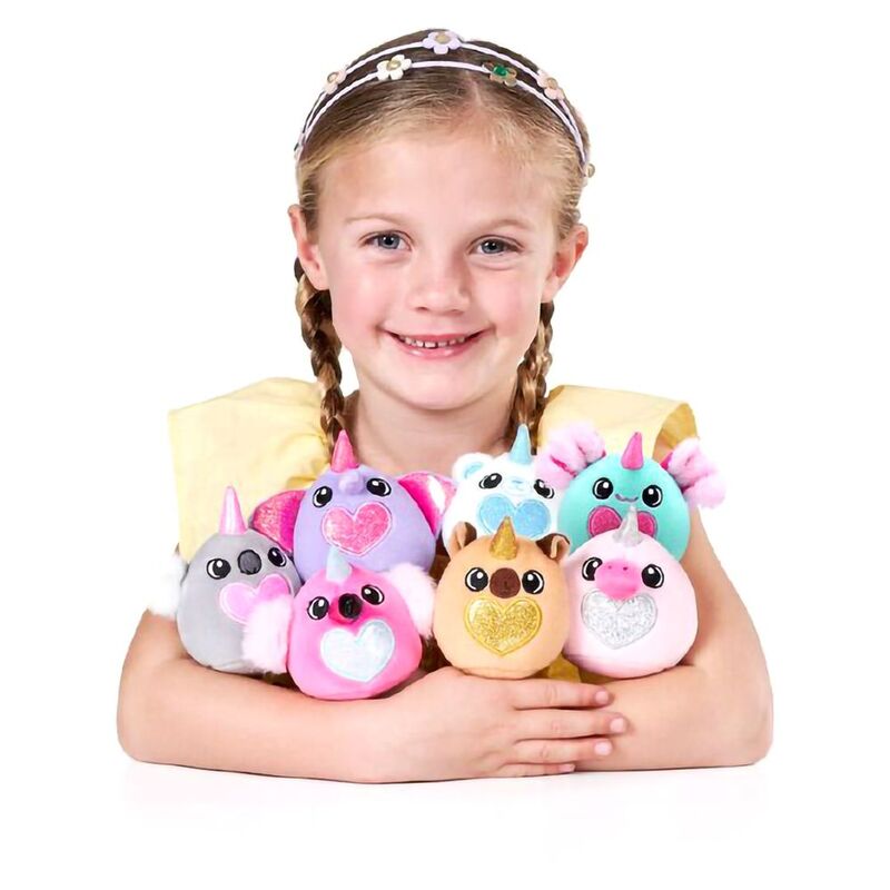 Life's always sunny side up in Eggzania! Your new baby Eggzanias feature glittery hearts on their tummies, adding a magical sparkle. Collect all seven super soft, cuddly plushes, and mark them off on your collector's guide. Can you discover the rare Baby Eggzania? Rainbocorns are the ultimate surprise eggs, blending mystery unboxing with quirky surprises. In Rainboville, magic unfolds with every egg, and the excitement never stops!