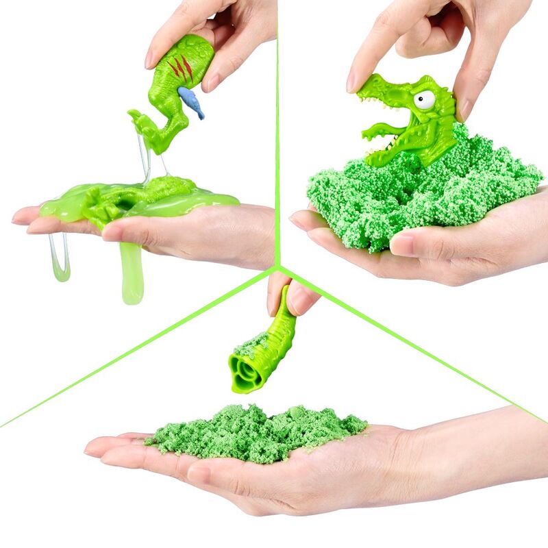 - Compounds inside: Dig your way through slime, sand, fizz and foam to discover your Dino pieces. Watch the volcano lava fizz to the top and squeeze the color changing sand to watch it magically change!