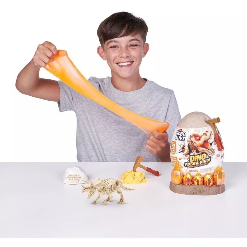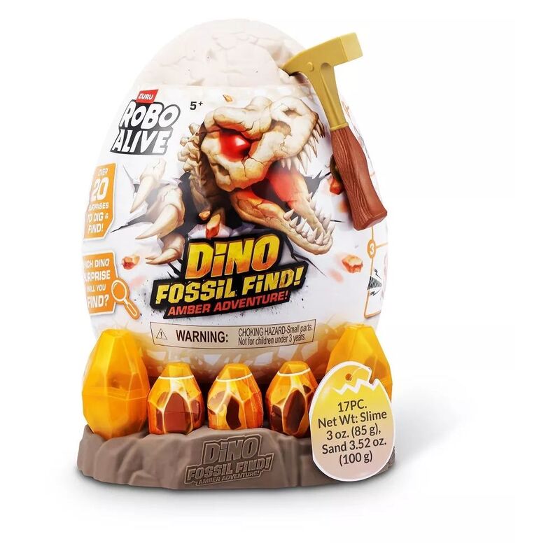 Calling all explorers! Embark on an exhilarating journey with Robo Alive Fossil Find Amber Adventure! Delve deep into layers of rock and sand, and be careful of the Magma glow-in-the-dark slime that adds an unexpected twist to your excavation. Unearth hidden dinosaur fossils and enchanting Amber eggs. Assemble the fossils to see your dinosaur spring to life with stunning light-up features. This interactive adventure offers the thrill of discovery and the fun of collecting and building four unique dinosaurs. Engage in this captivating exploration and experience the wonder-what ancient dinosaur will reveal itself from your exciting search?