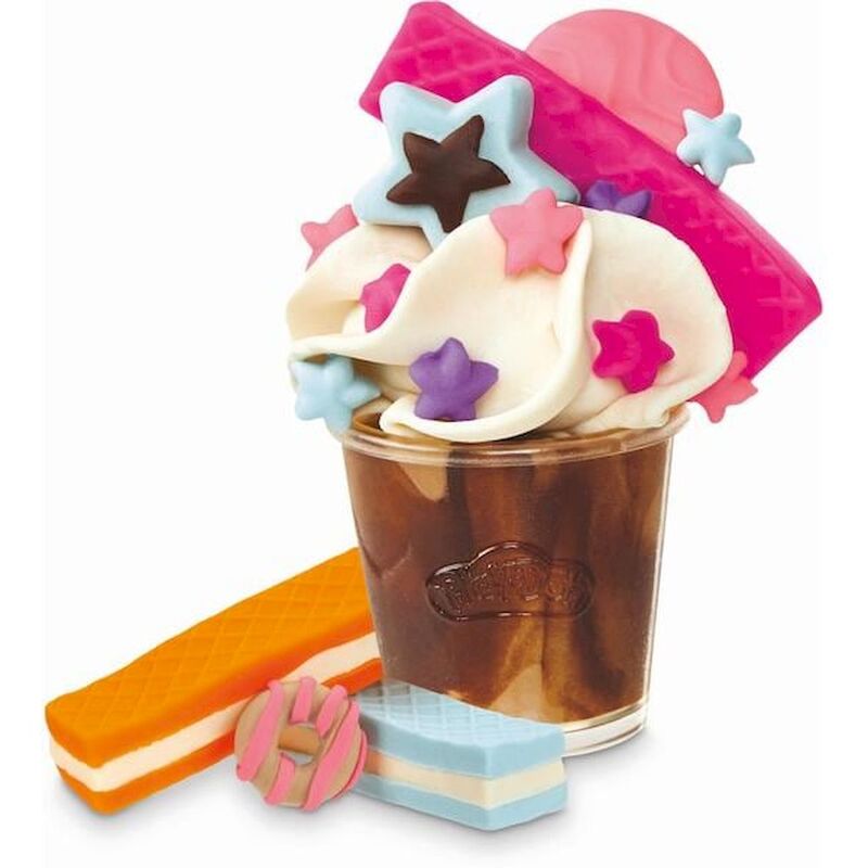 • FILL, SPIN, AND TOP: Fill up a cup at the filling station, then watch it spin and slide over to the topping station where Play-Doh compound ripples out like pretend whipped cream