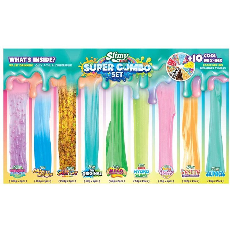 - Slimy Super Combo Set: 9 different types of slime, packed into 16 pots for ultimate ASMR satisfaction!