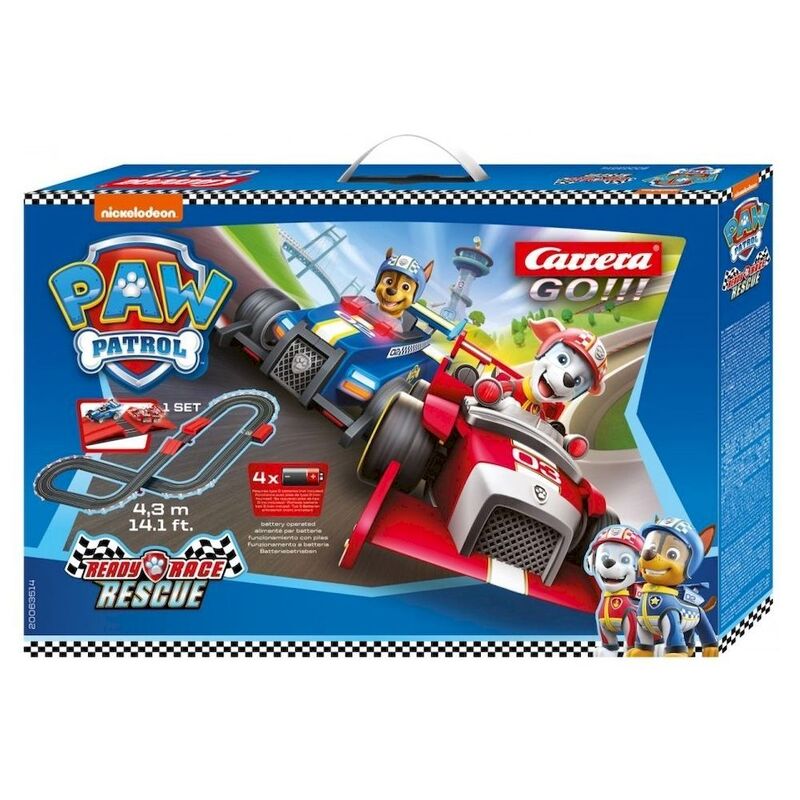 Canine hero Chase drives his cool blue police car, and Marshall the absent-minded dalmatian his bright red fire engine, at full speed around the 4.9-metre Carrera GO!!! racing circuit. You decide the adventures and tasks facing Chase and Marshall on the bright blue tracks of your bedroom circuit.