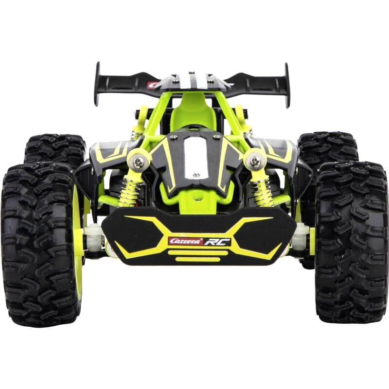 This buggy attracts glares and stares wherever it's in action: The striking lime-green and yellow livery of the Carrera RC Lime Buggy never fails to catch the eye; even more so with pneumatic tyres and all-round suspension, making it ideal for exploratory trips out into rough terrain.
