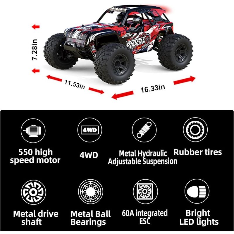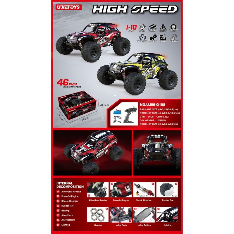 Remote Distance = 100 meters+Feature = High speed 46km/h+ Battery = 7.4V 2000MAH lithium battery