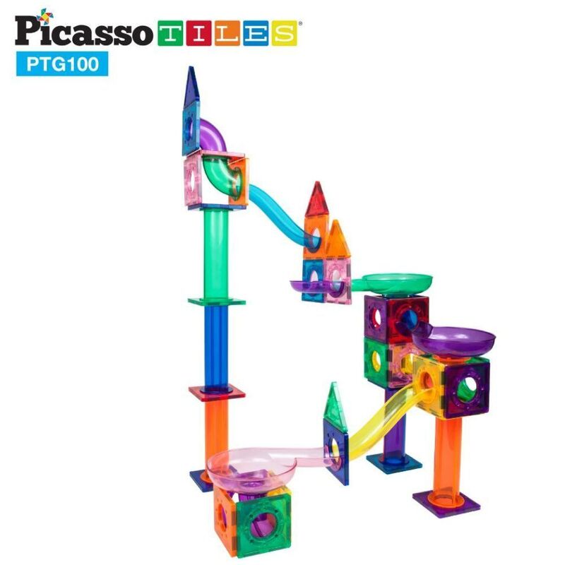 Dive into an engineering exploration with PicassoTiles' 100-piece marble run maze building block set (SKU:PTG100).
