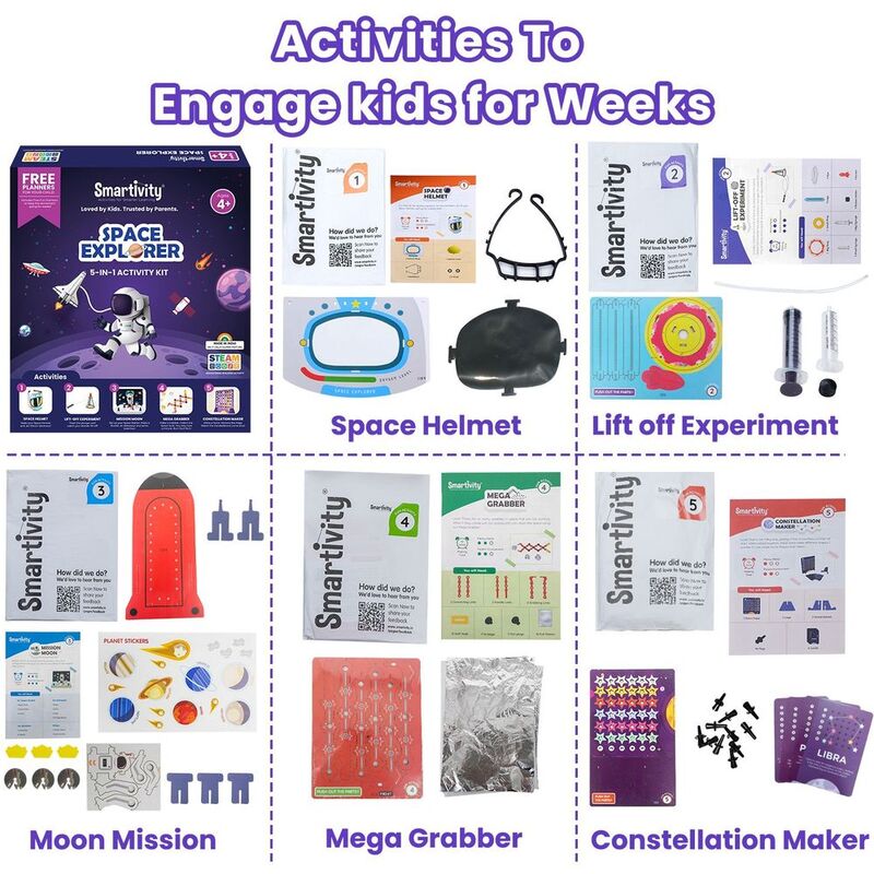 The first activity in this kit is the DIY Space Helmet. Kids can unleash their creativity as they design and decorate their very own space helmet. With the included materials and step-by-step instructions, they can create a unique and personalized helmet that will make them feel like a true space explorer. Next up is the Lift Off Experiment. This hands-on experiment allows children to understand the concept of thrust and propulsion as they launch their own rocket into the sky. With the materials provided, kids can learn about the science behind space travel while having a blast. The DIY Space Station is another thrilling activity included in this kit. Children can assemble their own space station using the provided components. This activity not only enhances their problem-solving skills but also sparks their imagination as they envision life in outer space. The DIY Grabber is a fun and interactive activity that challenges kids to build their own robotic arm. With the help of the step-by-step instructions, children can learn about mechanical engineering while constructing a functional grabber that can pick up objects. This activity encourages fine motor skills and creative thinking.