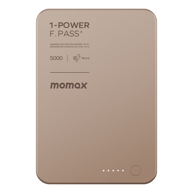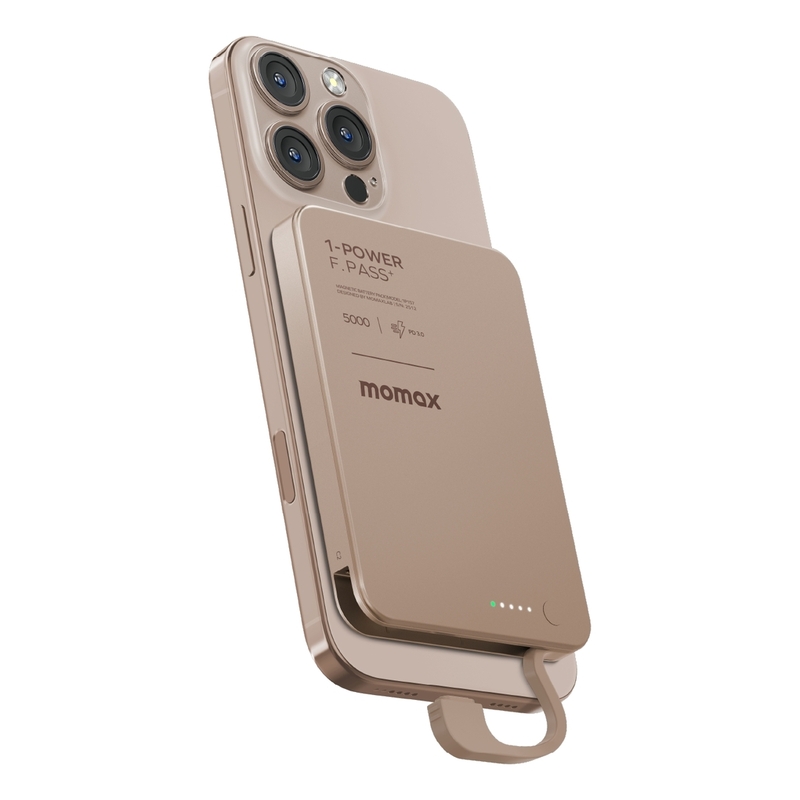 Momax 1-Power F.Pass+ 5000mAh Power Bank With Built-In Cable & Magnetic Attachment - Desert Titanium