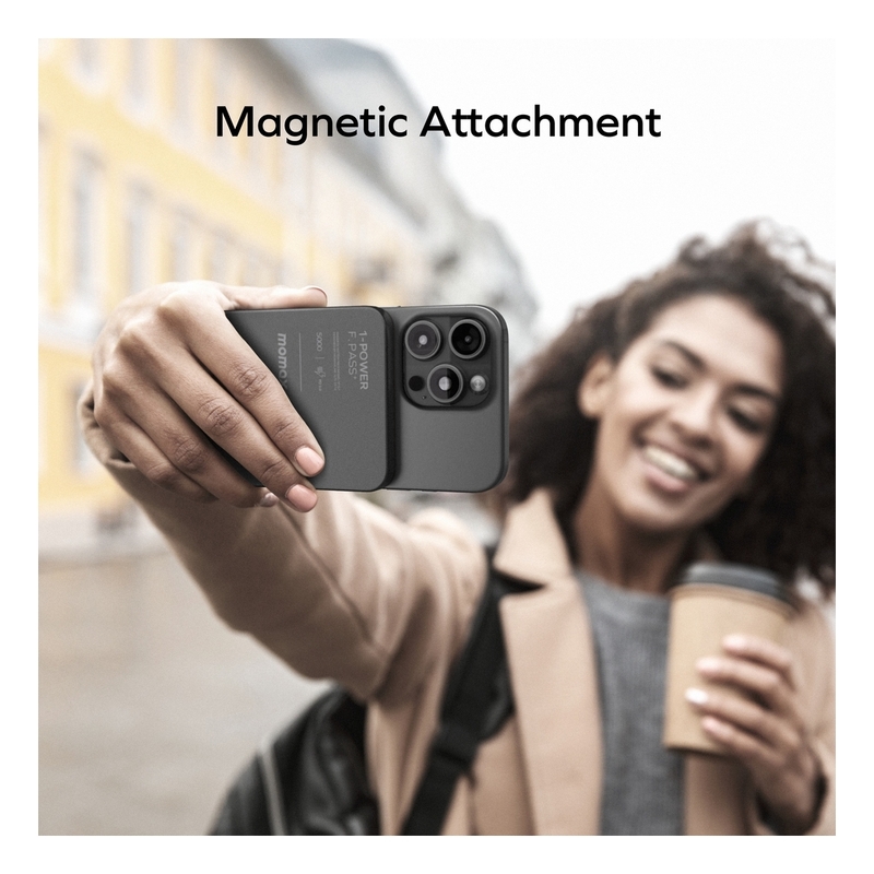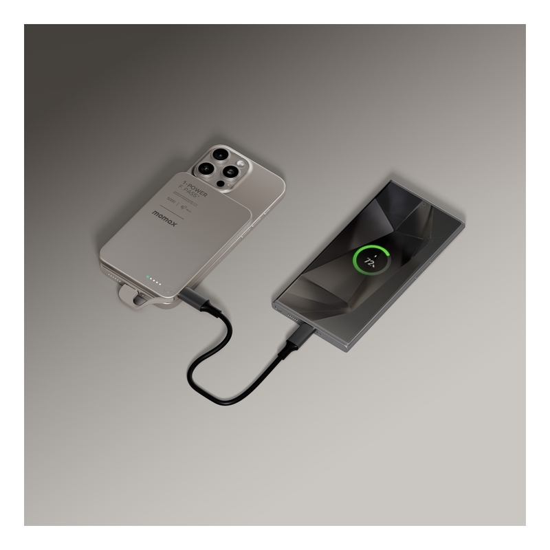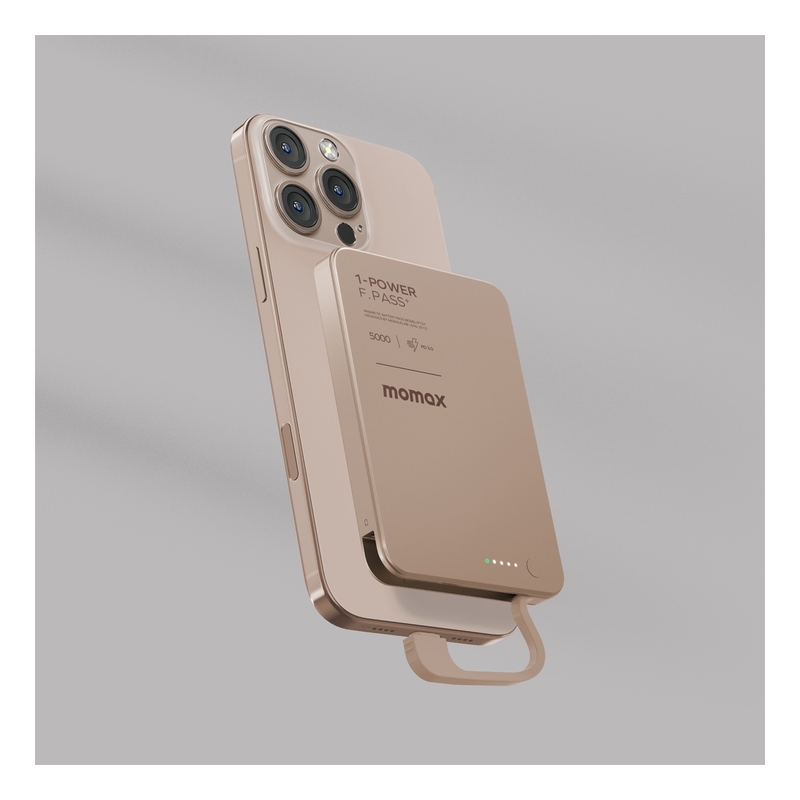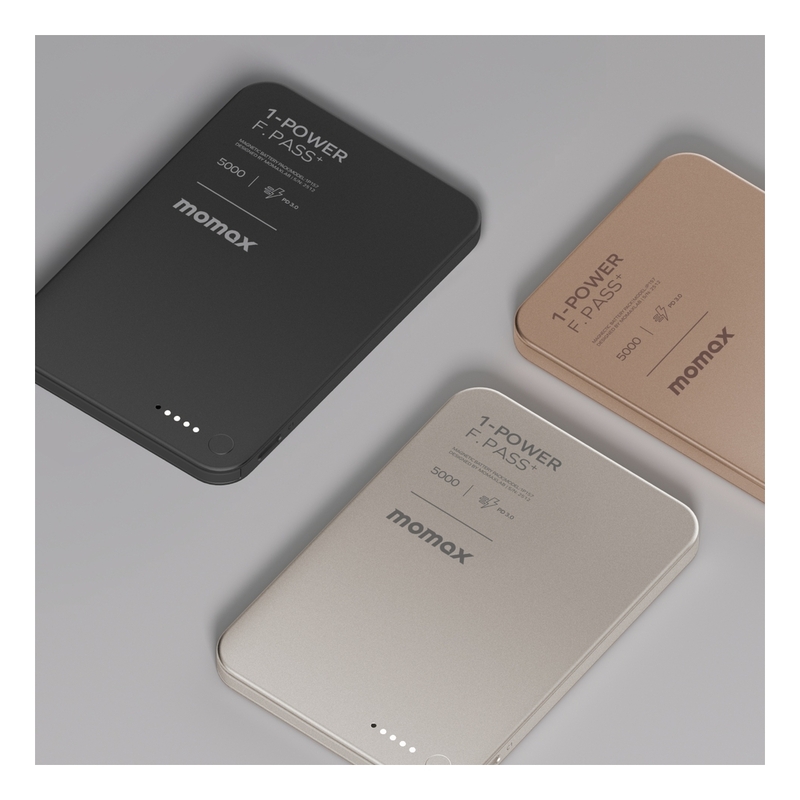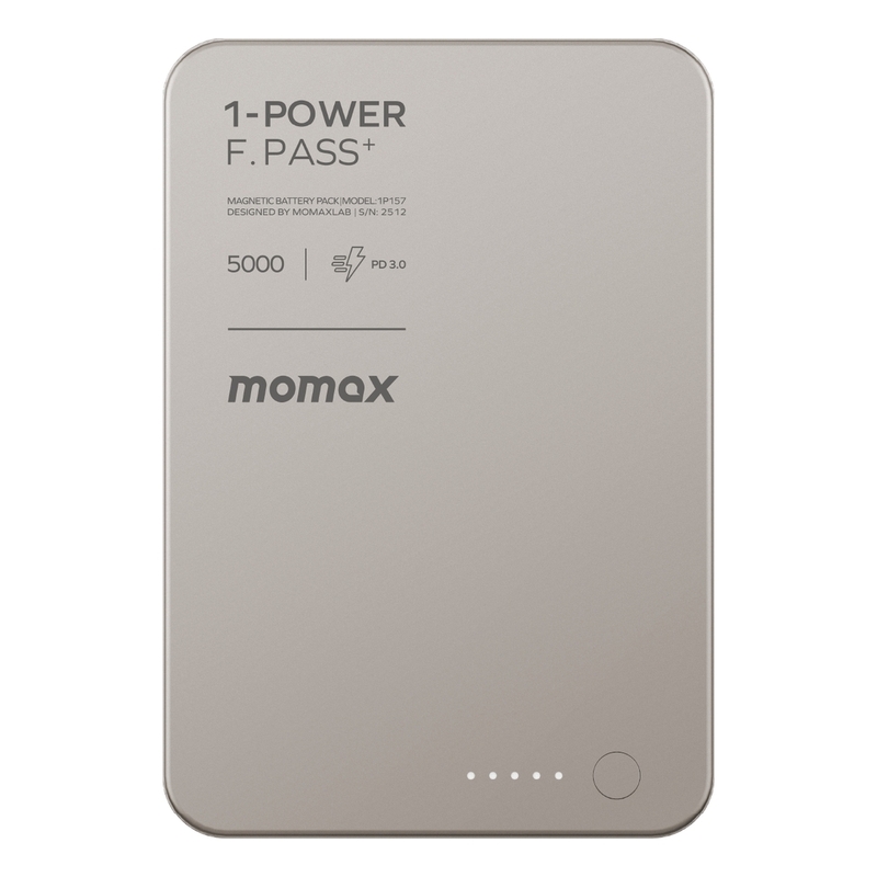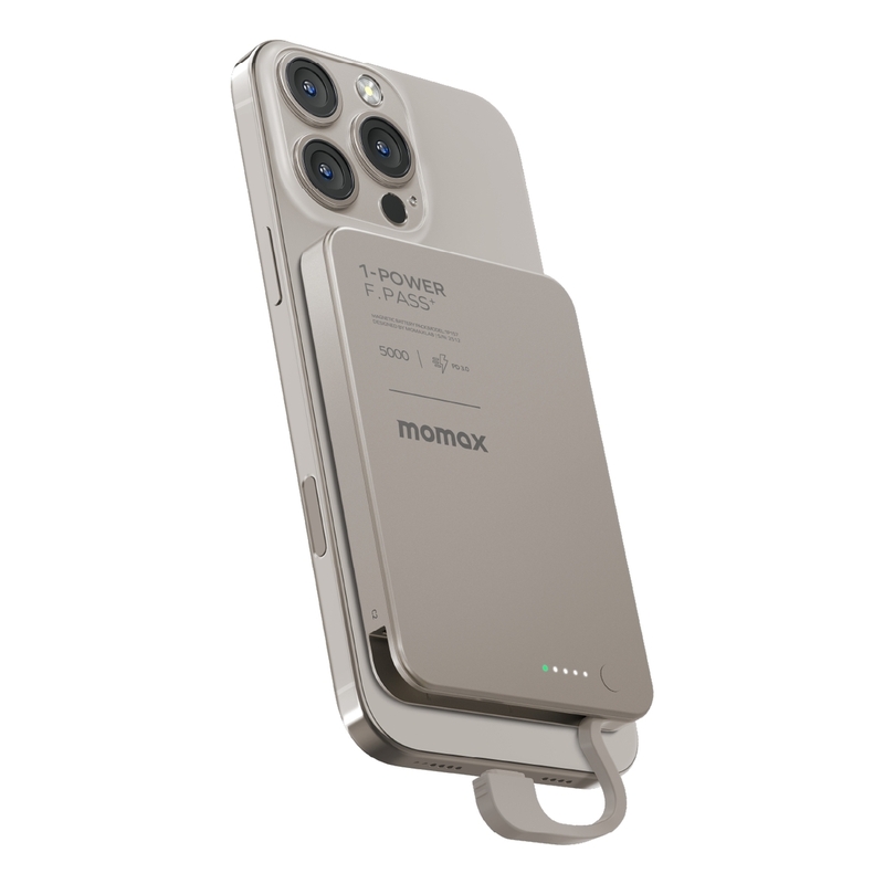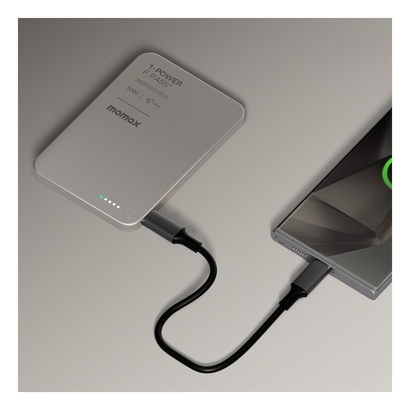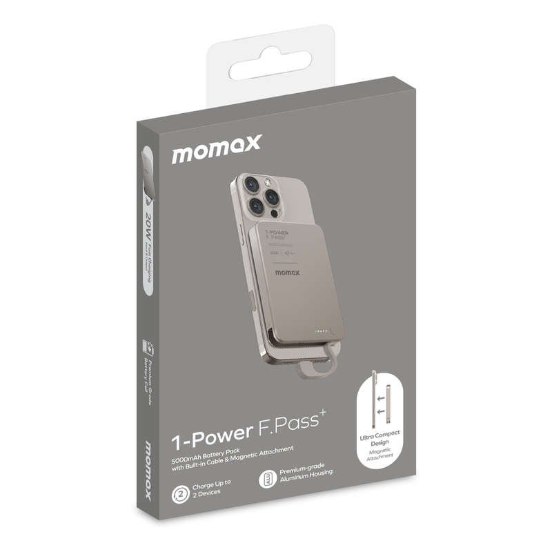 Momax 1-Power F.Pass+ 5000mAh Power Bank With Built-In Cable & Magnetic Attachment - Titanium